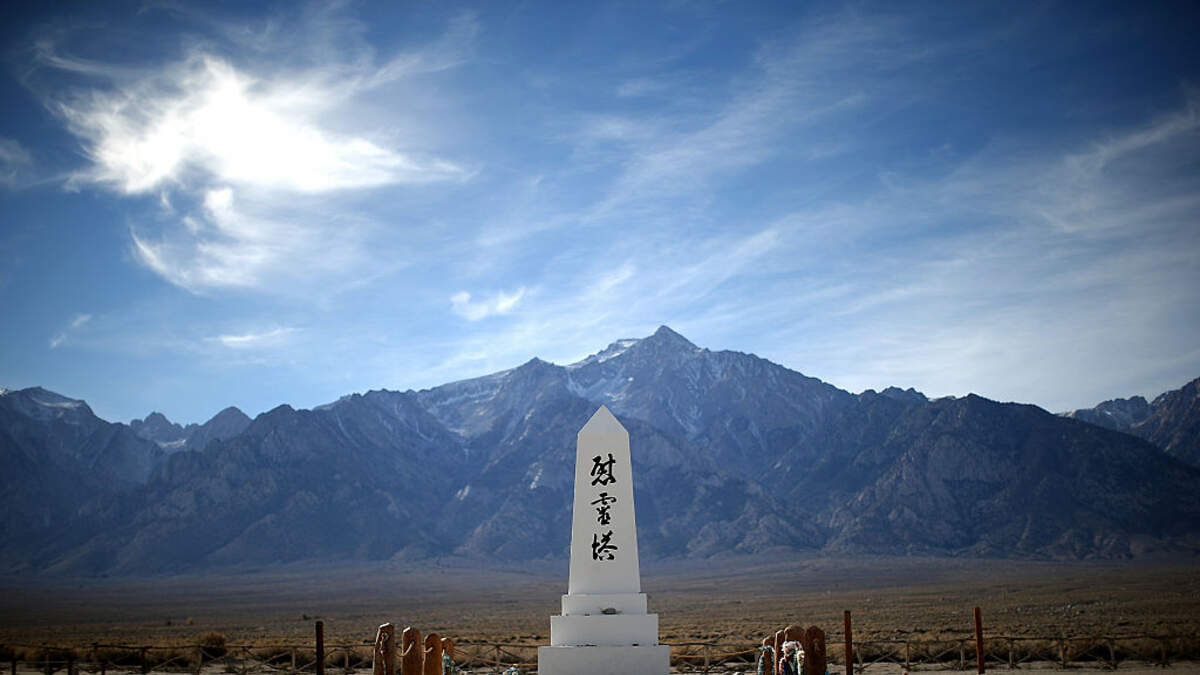 Ten war relocation centers were built in remote deserts, plains, and swamps of seven states; Arkansas, Arizona, California, Colorado, Idaho, Utah, and Wyoming. Manzanar, located in the Owens Valley of California between the Sierra Nevada on the west and the Inyo mountains on the east, was typical in many ways of the 10 camps. This monument stands at Manzanar. (Getty Images)Photo: Getty Images North America