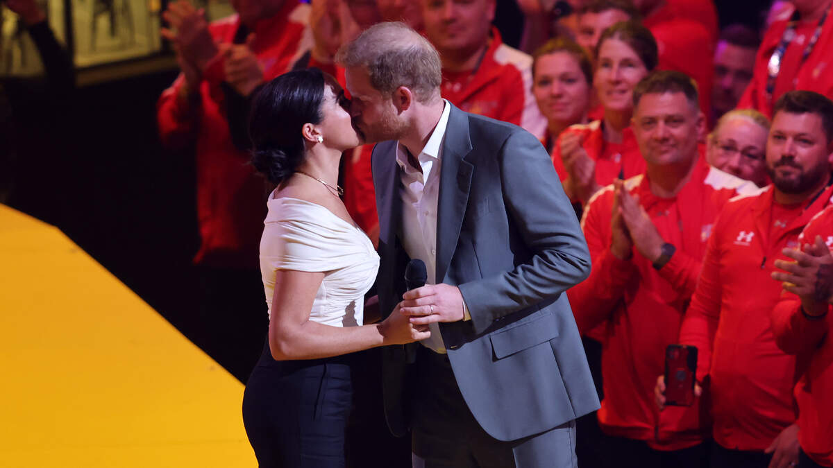 Meghan, Duchess of Sussex and Prince Harry, Duke of Sussex appear on stage during the Invictus Games The Hague 2020 Opening Ceremony at Zuiderpark on April 16, 2022 in The Hague, Netherlands. (Photo by Joern Pollex/Getty Images for Invictus Games The Hague 2020)Photo: Getty Images