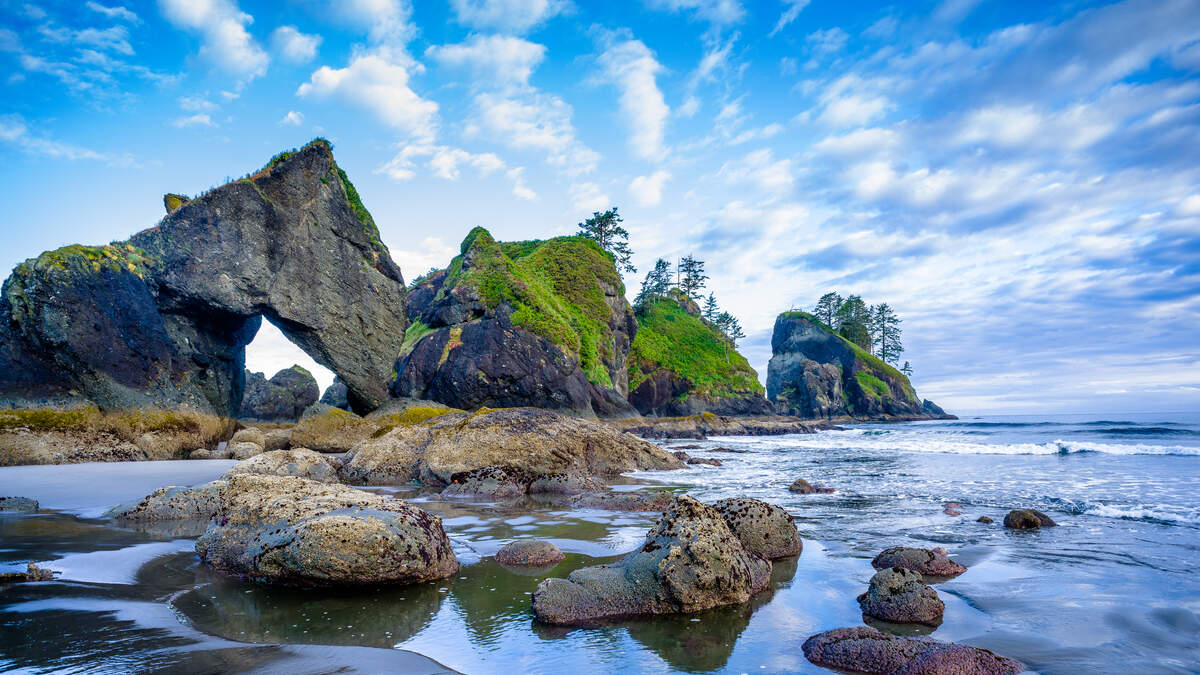 "Get out in nature and enjoy the stunning rocky beaches of Olympic National Park in Washington. A perfect weekend trip from Seattle or Portland, Olympic National Park is an ideal destination for those looking to explore the great outdoors during their beach weekend getaway. Ruby Beach is known for its incredible rock formations, piles of driftwood, and active tide pools. Kalaloch Beach and Rialto Beach (known for the Hole in the Wall tide pools) are other popular beaches in the park. There are several campsites, cabins, and lodges available for your stay so you never have to leave the area. If you do want a break from the beach, the park's nearby Hoh Rain Forest is a great place to hike — its lush, green foliage will be a stark contrast to the rocky shores just a few miles away."