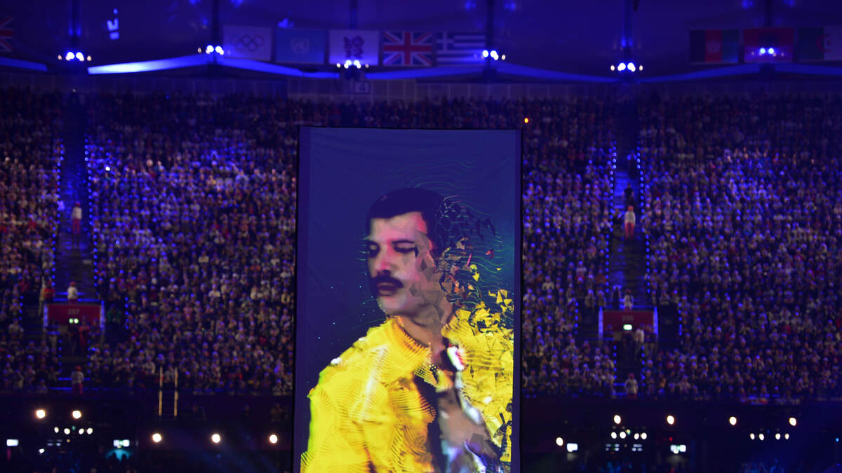 The late Freddie Mercury is displayed on screen during the Closing Ceremony on Day 16 of the London 2012 Olympic Games at Olympic Stadium on August 12, 2012 in London, England. (Photo by Jeff J Mitchell/Getty Images)Photo: Jeff J Mitchell / Getty Images Sport / Getty Images