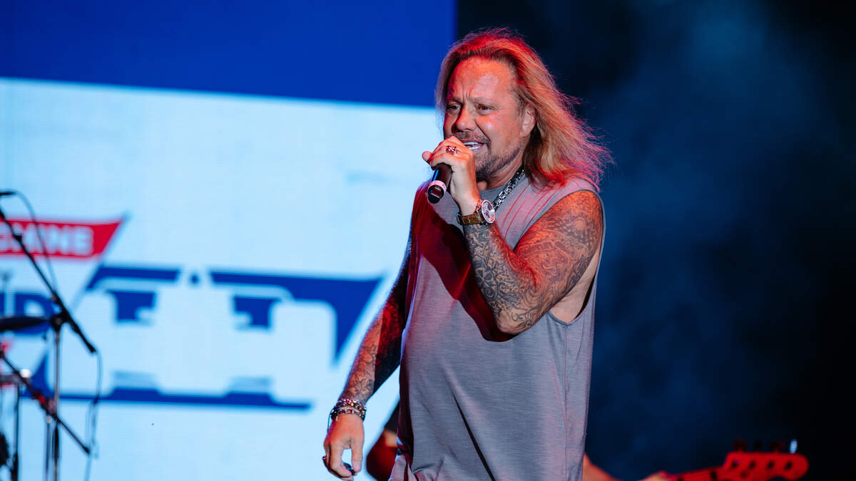 Vince Neil faceplanted during Motley Crue's gig in Atlantic City on Friday. They were just starting "Wild Side" when he went down while running across the stage, but he was able to compose himself by the time he had to start singing. You can tell the mic was live because you can hear it hit the stage.